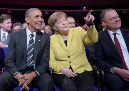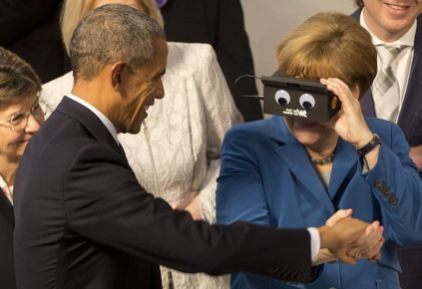 德國總理默克爾利用VR眼鏡與美國總統(tǒng)奧巴馬互動