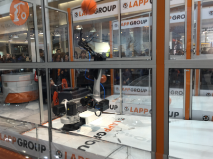 此次展會最大的宣傳點就是基于德國工業(yè)提出的工業(yè)4.0概念。基于這個宣傳點,所以從已進(jìn)入展會區(qū)域,抬頭就能看到大量的帶有4.0標(biāo)識的各大品牌的巨幅廣告及宣傳標(biāo)語。也許大部分人對于所謂的工業(yè)4.0并沒有具體的直接的概念,但其實它已經(jīng)開始逐漸的體現(xiàn)并滲透在我們的日常工作和生活中。比如:人與智能機(jī)器人的交流、智能物聯(lián)網(wǎng)等相關(guān)概念及應(yīng)用。